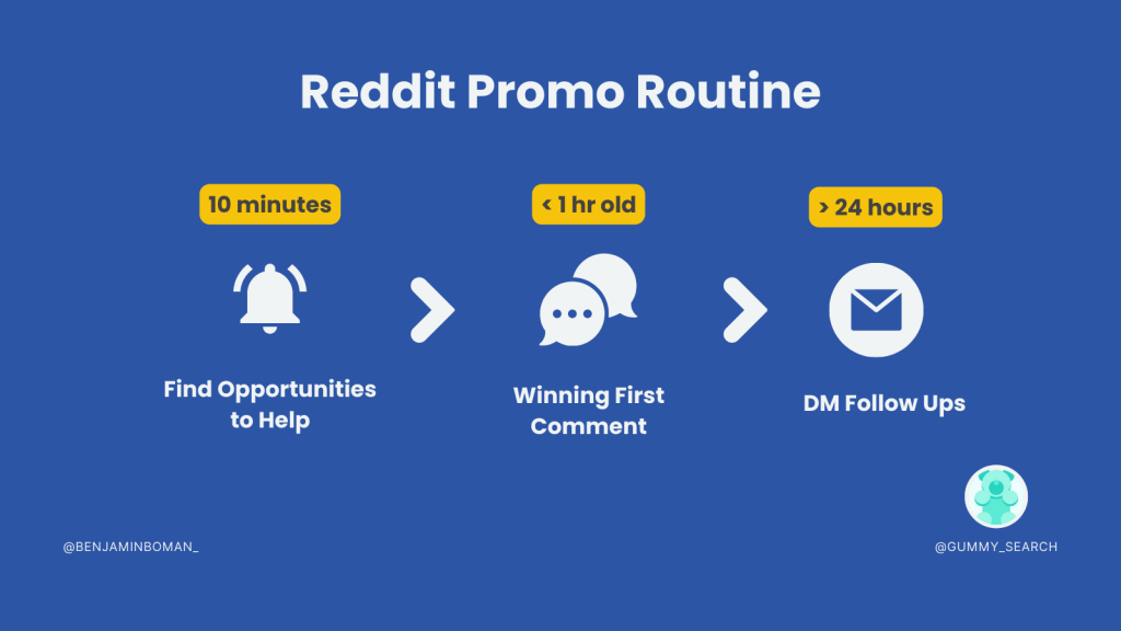 Firstly, don’t use the same canned response to every discussion. People will easily see through that by clicking on your Reddit profile and looking at your history. They will see your intentions here.
